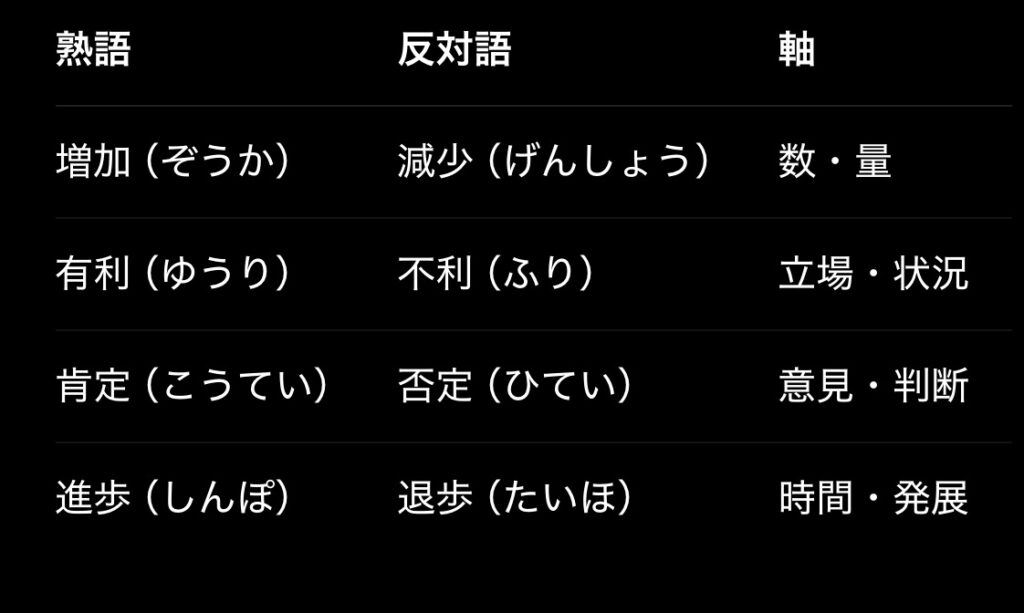 ② 基本ルール:反対語・同義語は「軸」を意識すると覚えやすい